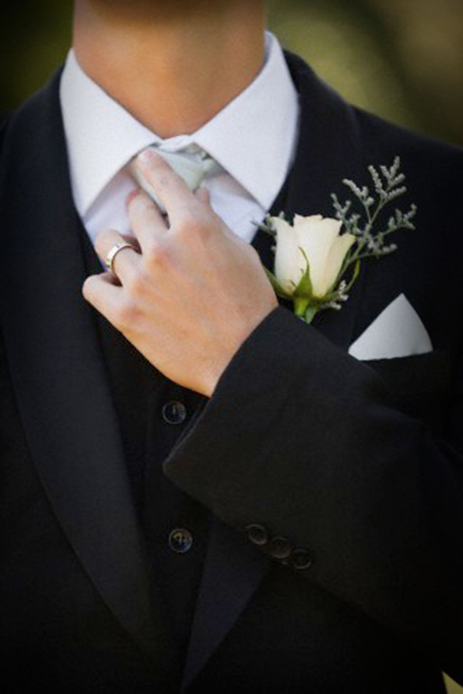 The goal on your wedding day is to look the best you can be. This is your moment to truly shine. Your attire should be classic with a touch of your personal style. In this regard, a carefully fitted tuxedo should be adorned with a boutonniere. Classic doesn’t mean your great grandfather’s suit, but a style that remains timeless or which you can re-use for another important formal occasion.