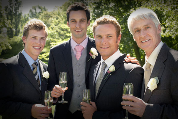 Formal suit colors are perfectly acceptable for your wedding day and men with their own suits can wear a similar suit so long as they’re comfortable with it and the suit is in great condition. Wear it with a light-colored shirt and tie, a dark colored suit provides a subtle elegance to a man that works well most styles of bridal fashion. However, if a new suit is necessary, make sure its well-made and versatile enough to wear even after your wedding.