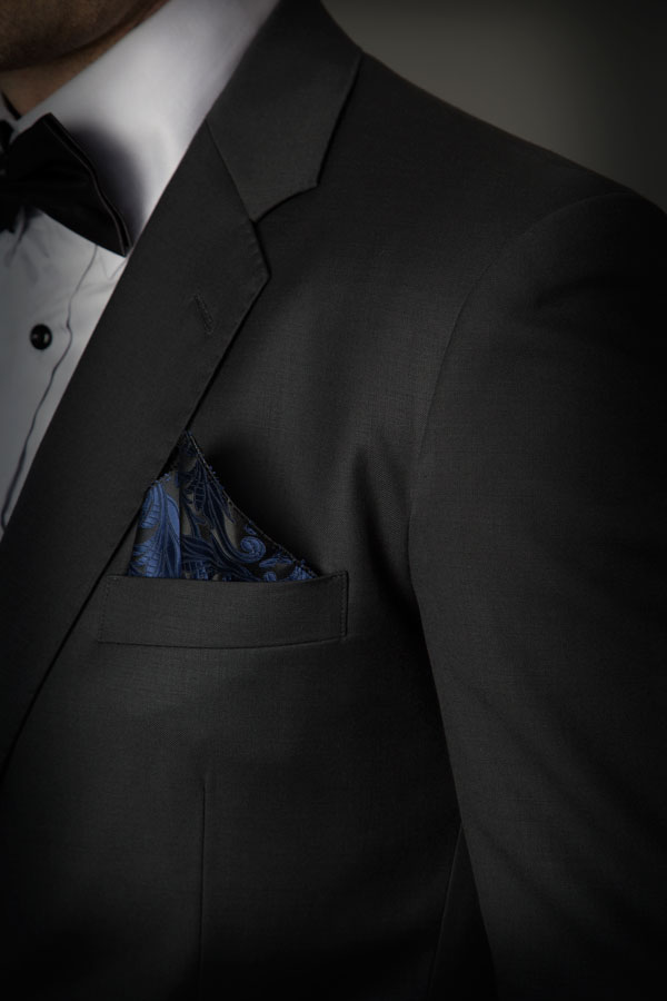 A black wool suit can easily attract attention – for the wrong reasons such as being ill-fitting, so it’s imperative that it fits the wearer really well. Men with a large built can appear too stocky in black if his suit is not fitted well, while a man with a smaller frame can easily be dwarfed by loose and oversized clothing. The black suit jacket’s draping from the shoulder area down to the hips is essential. To make it look flattering, the black jacket must be tapered close to the waist area. The black suit must not be too tight that it starts pinching the wearer as he moves around and it should not be loose that it looks like the wearer doesn’t own the jacket.
