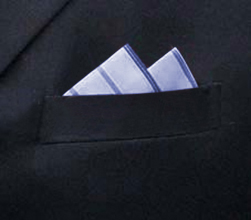 The square fold, which is also called TV fold or Presidential fold, is regarded as the most understated of the 3 types. However, today this is also the least popular. The square fold is like the fold of the basic pocket thought it is a bit more narrow and longer so it can fit well in the pocket and still be seen. The exact measurements of the square depend on the pocket and the wearer’s preference but it should be at least 5 inches long and at least 3 inches wide. If the pocket square is made of cotton or linen, it should be starched to have a crisp appearance. If made of silk, it should also be starched yet folded so the rolled edges can be seen.